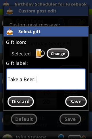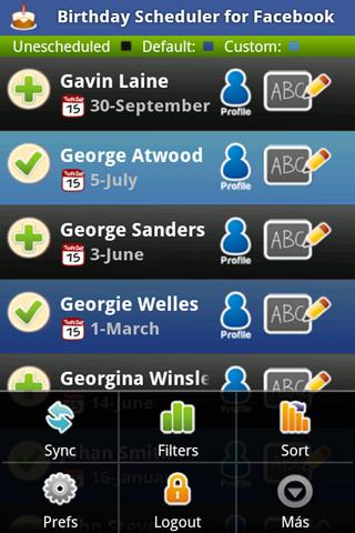 The Birthday Scheduler app for Android devices is very similar, just with a few less features. You can schedule birthday posts, see whose is coming up next, and even give gifts right from the app.